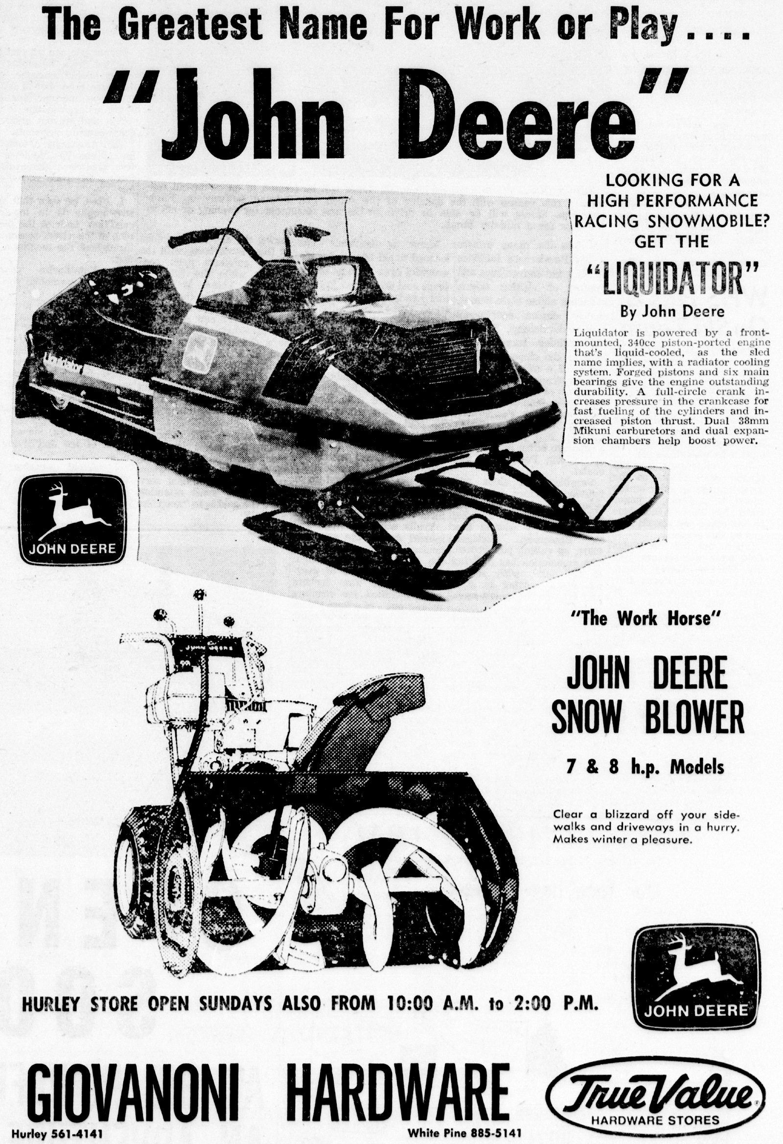 JOHN DEERE LIQUIDATOR SNOWMOBILE