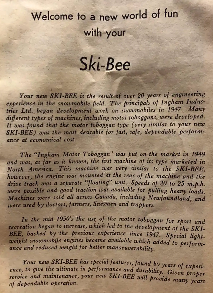 BEE SNOWMOBILE MANUAL AND HISTORY