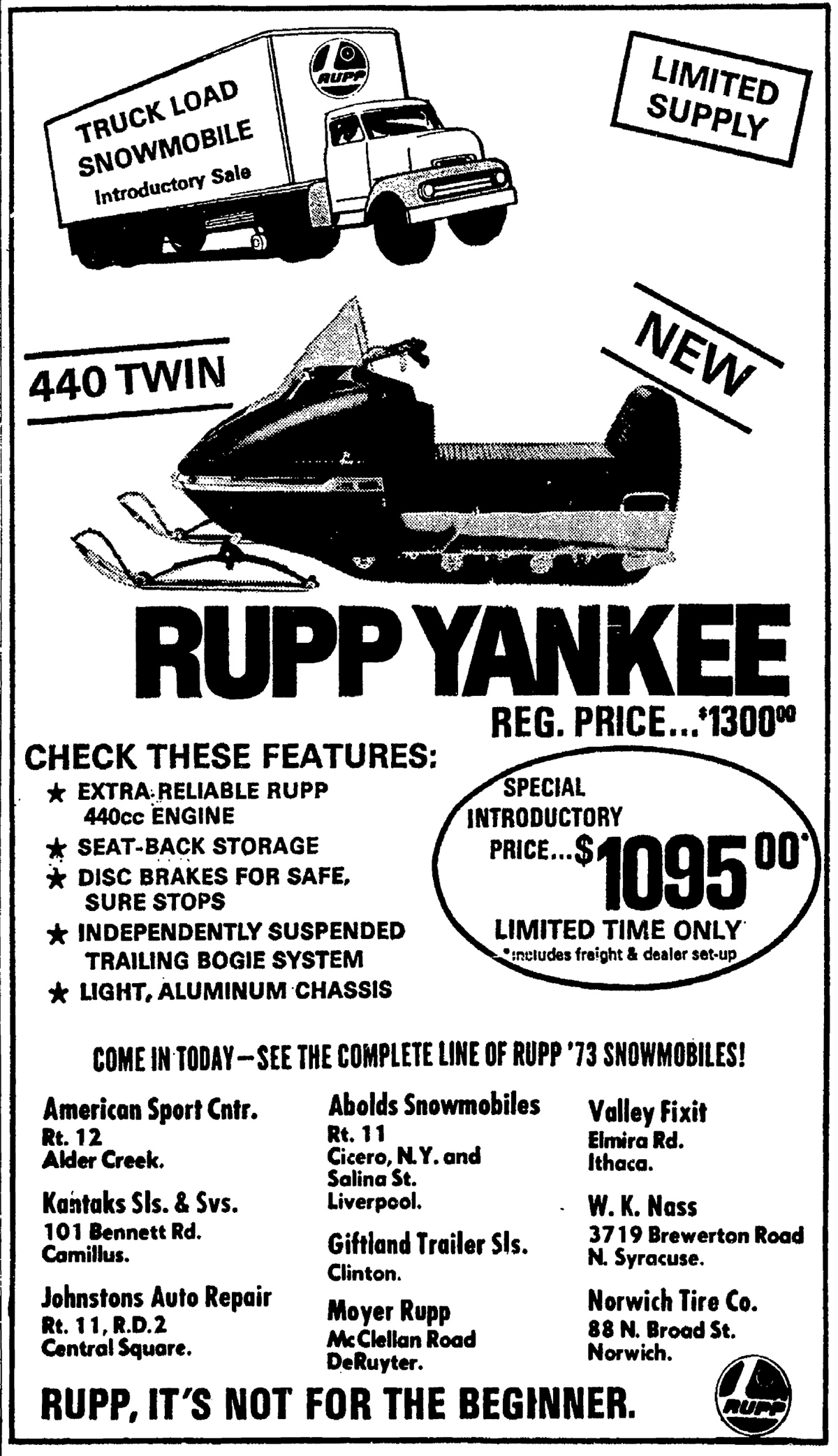 1973 RUPP SNOWMOBILE AD
