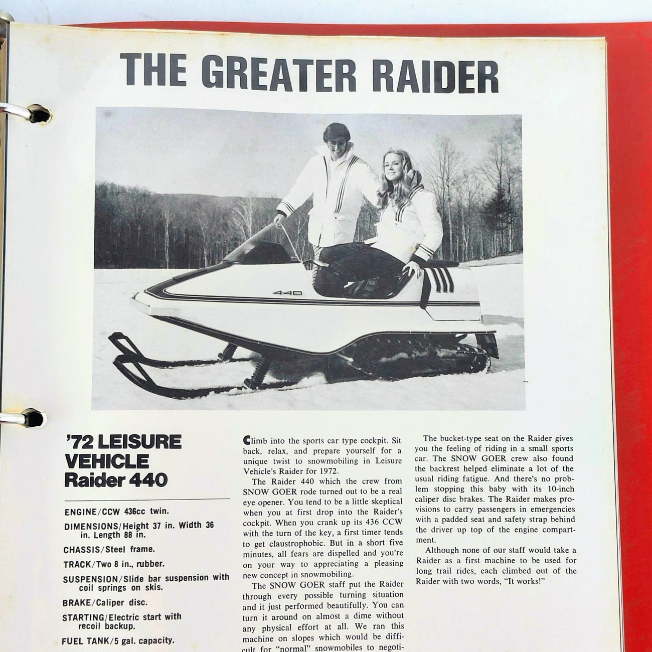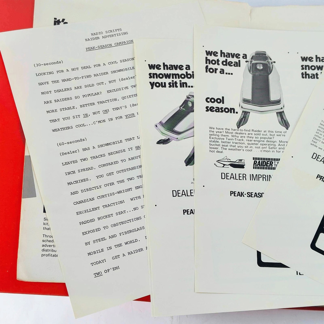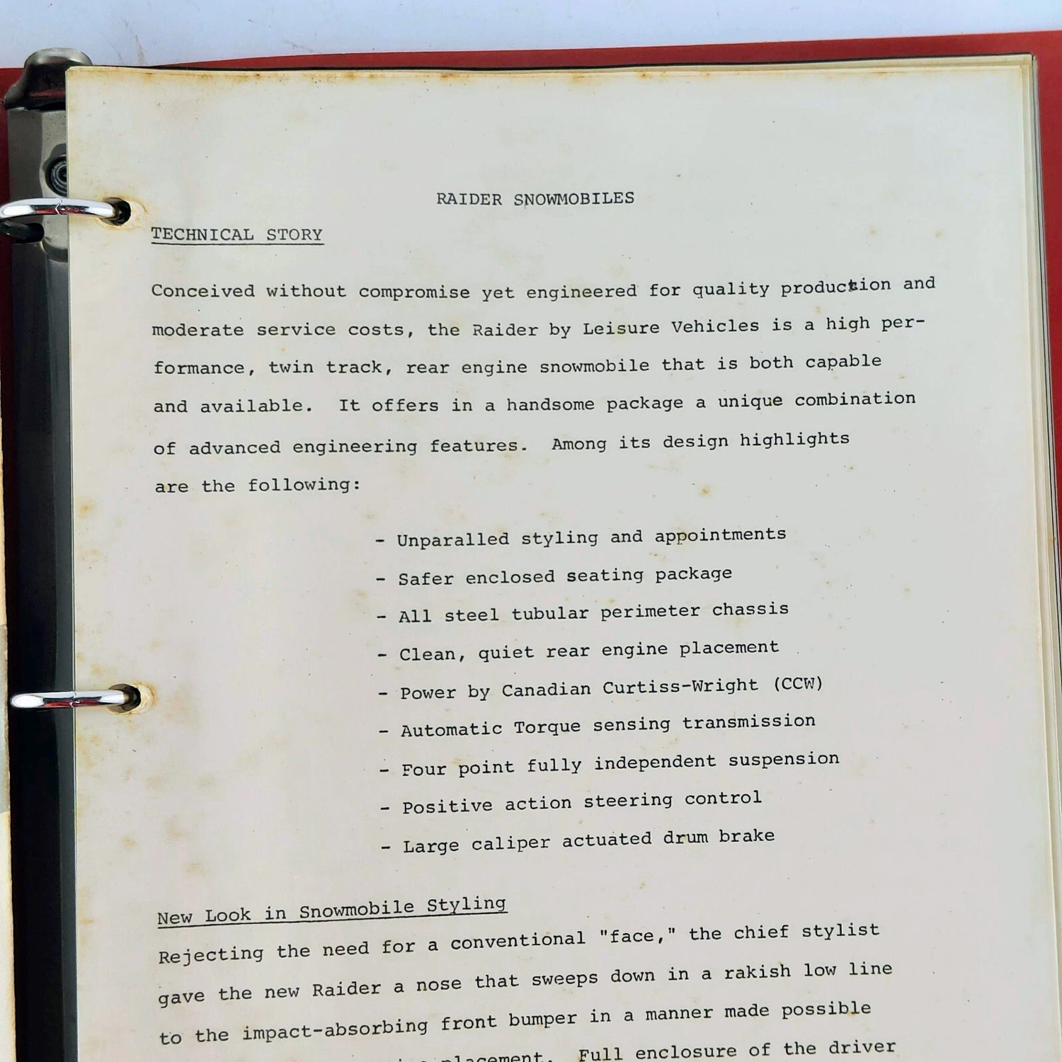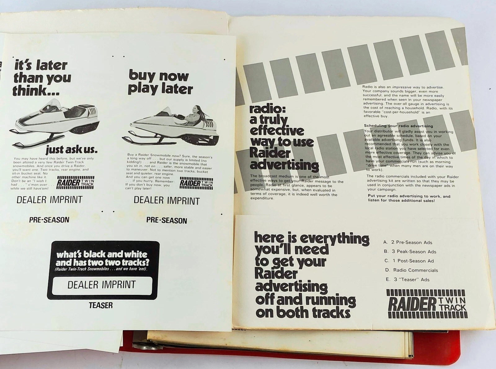 1972 RAIDER SNOWMOBILE DEALER ADVERTISING BINDER.