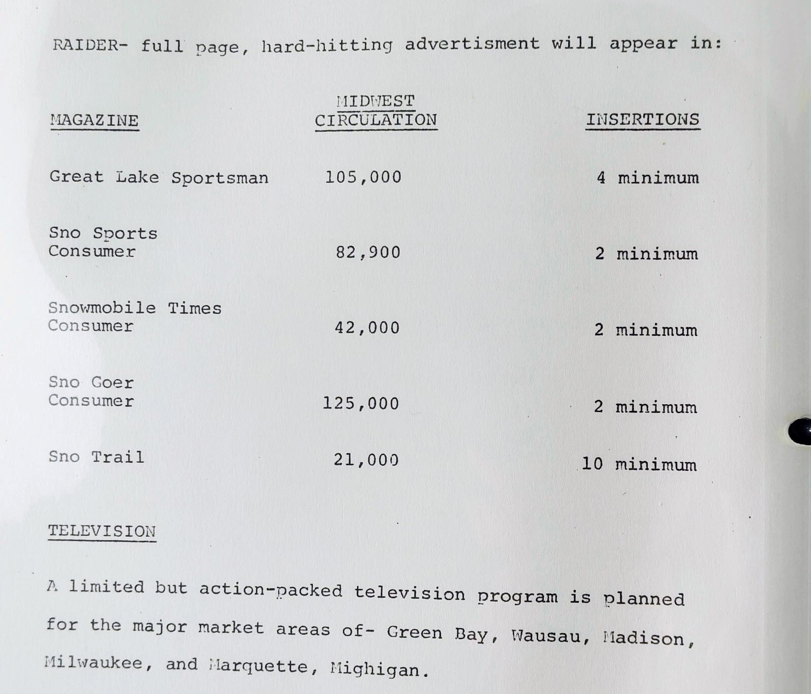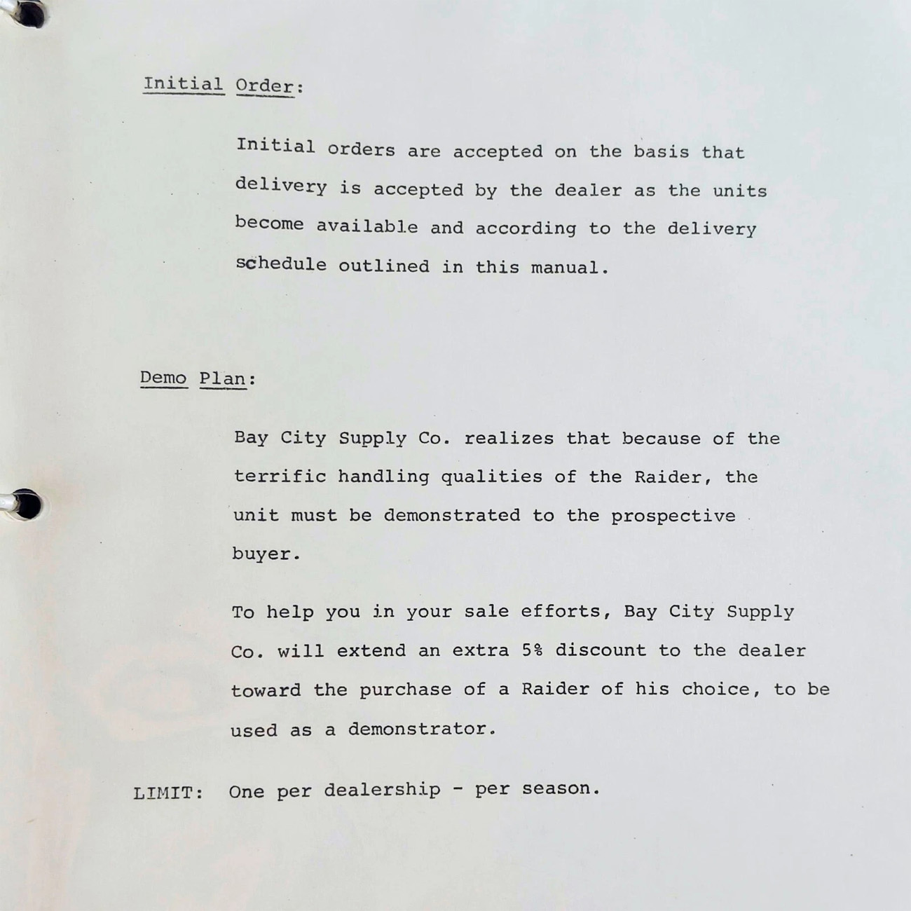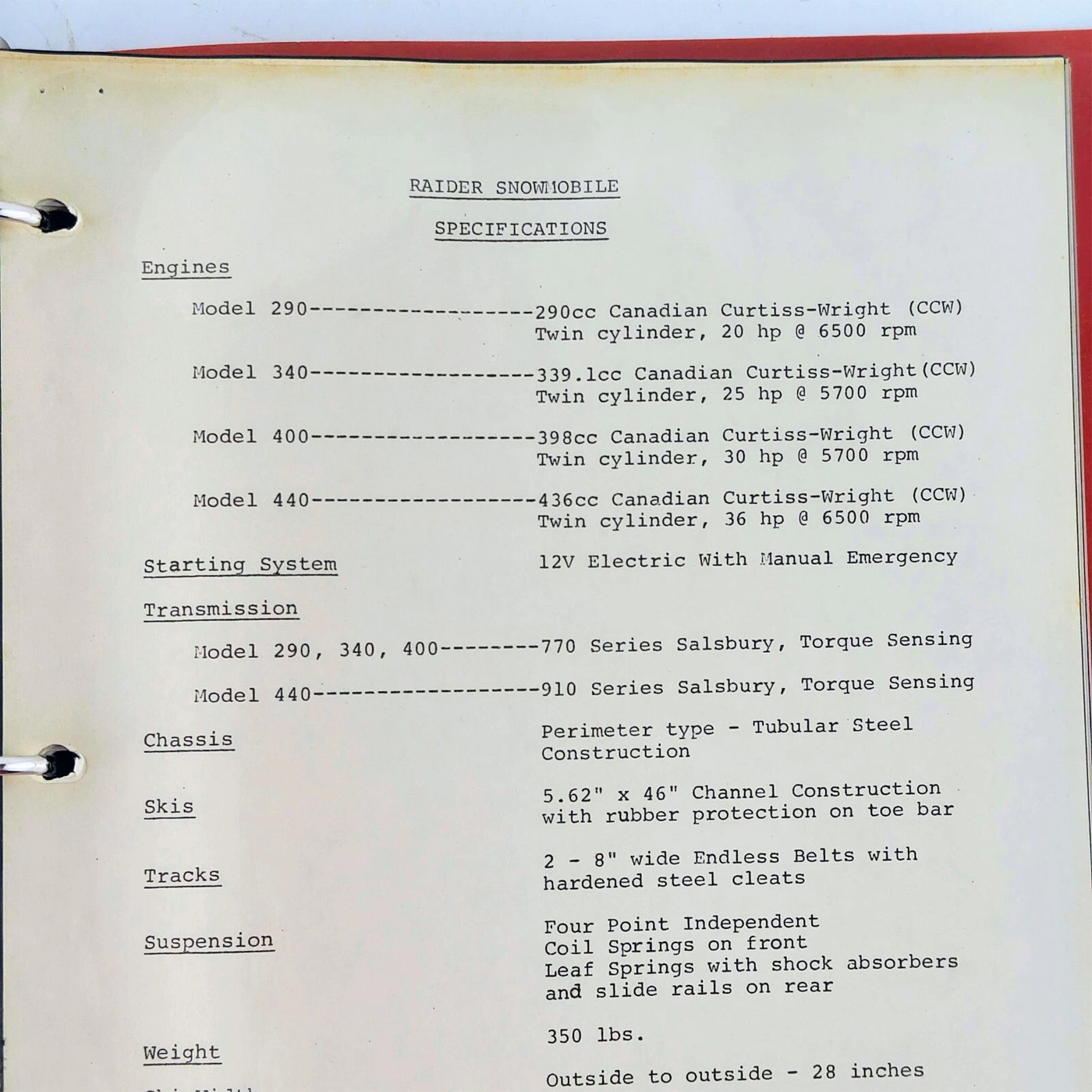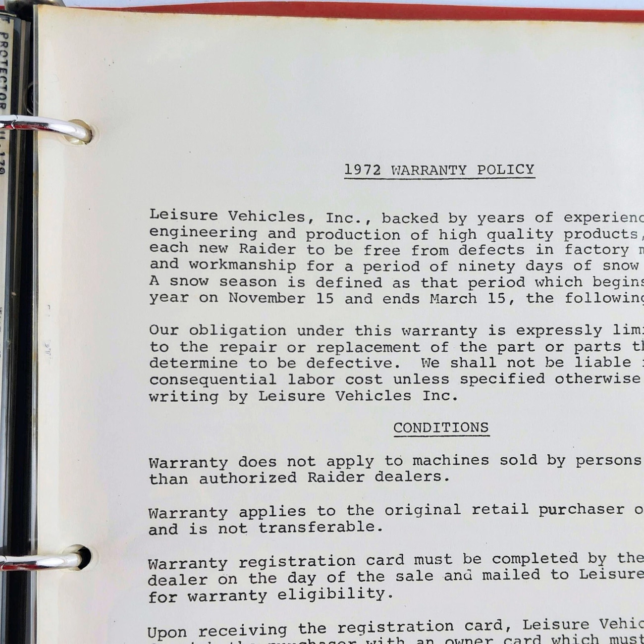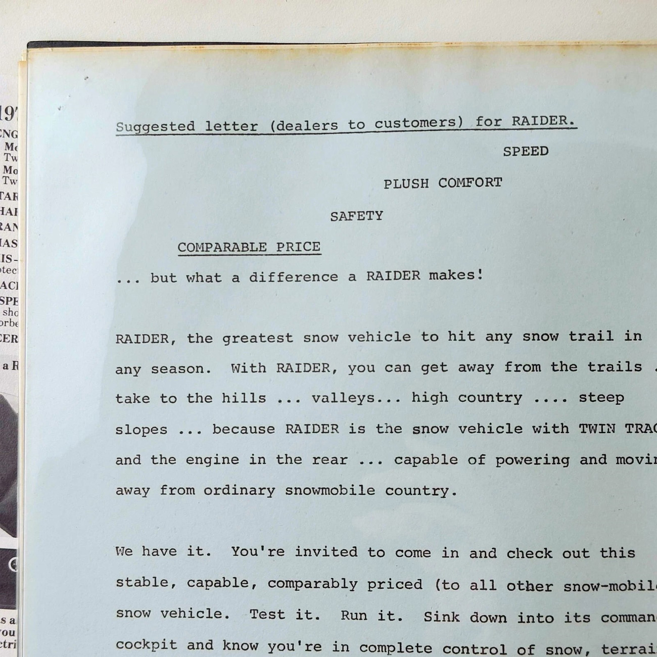 1972 RAIDER SNOWMOBILE DEALER ADVERTISING BINDER.