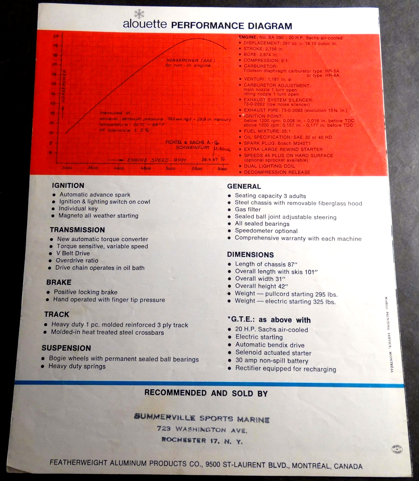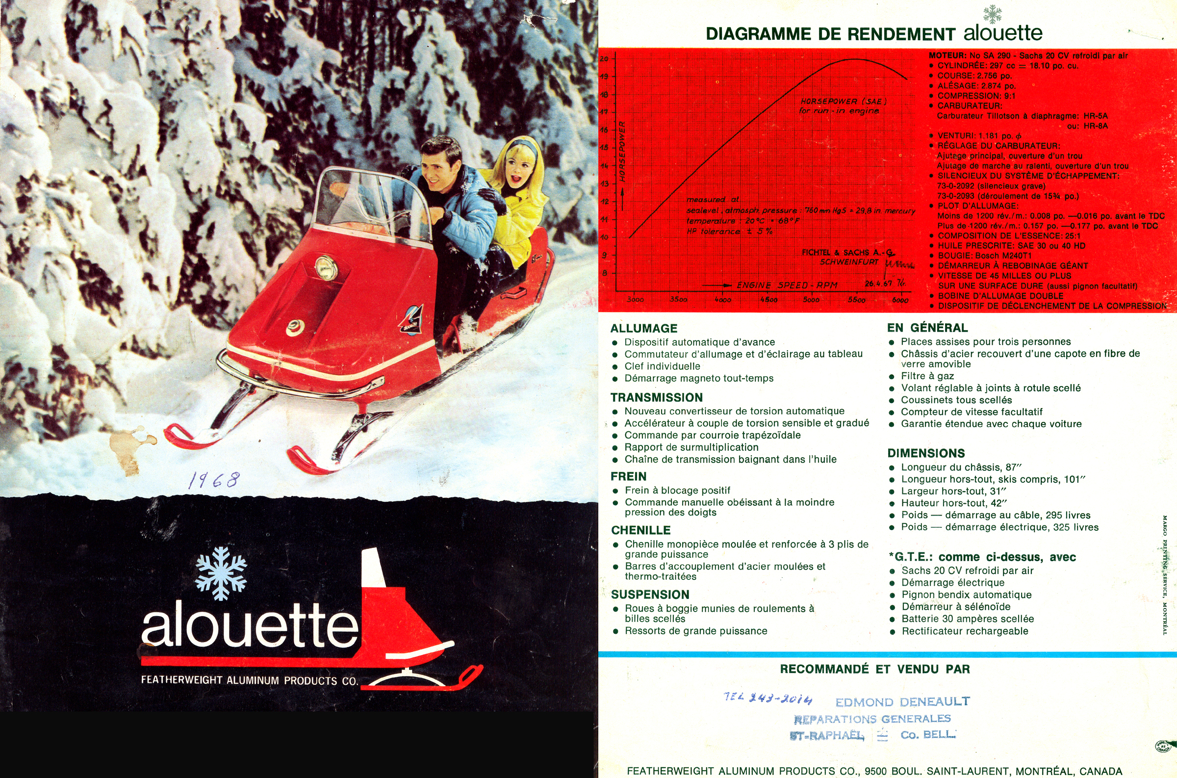 1968 ALOUETTE SNOWMOBILE MANUAL AND BROCHURE