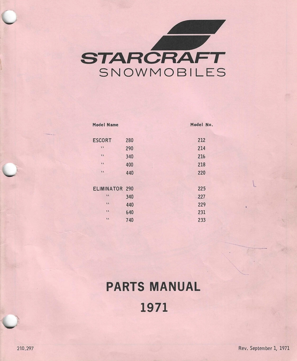 1971 STARCRAFT SNOWMOBILE MODELS
