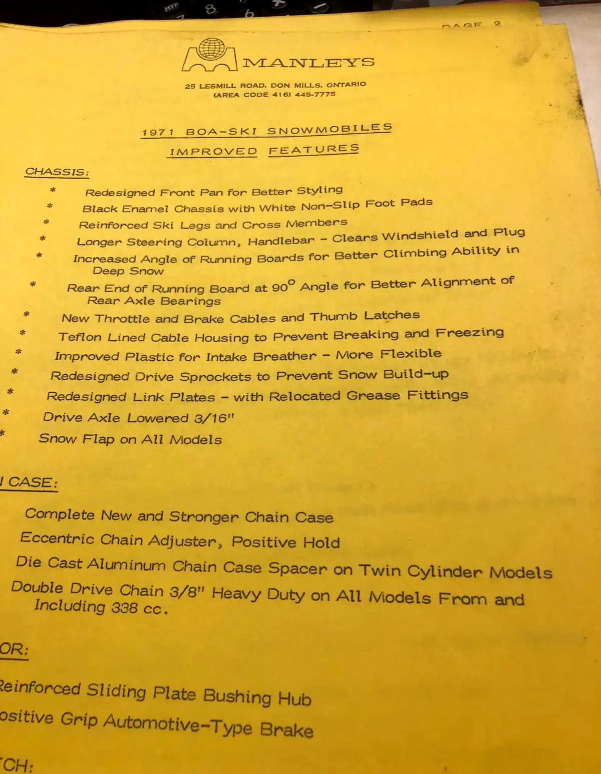 TO SEE A BROCHURE OF THIS BRAND OF VINTAGE SNOWMOBILE