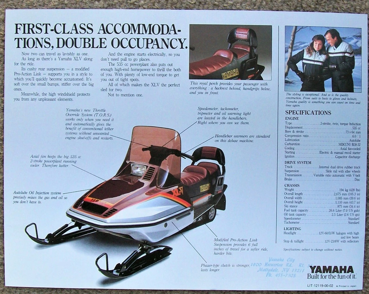 1985 YAMAHA XL-V SNOWMOBILE BROCHURE