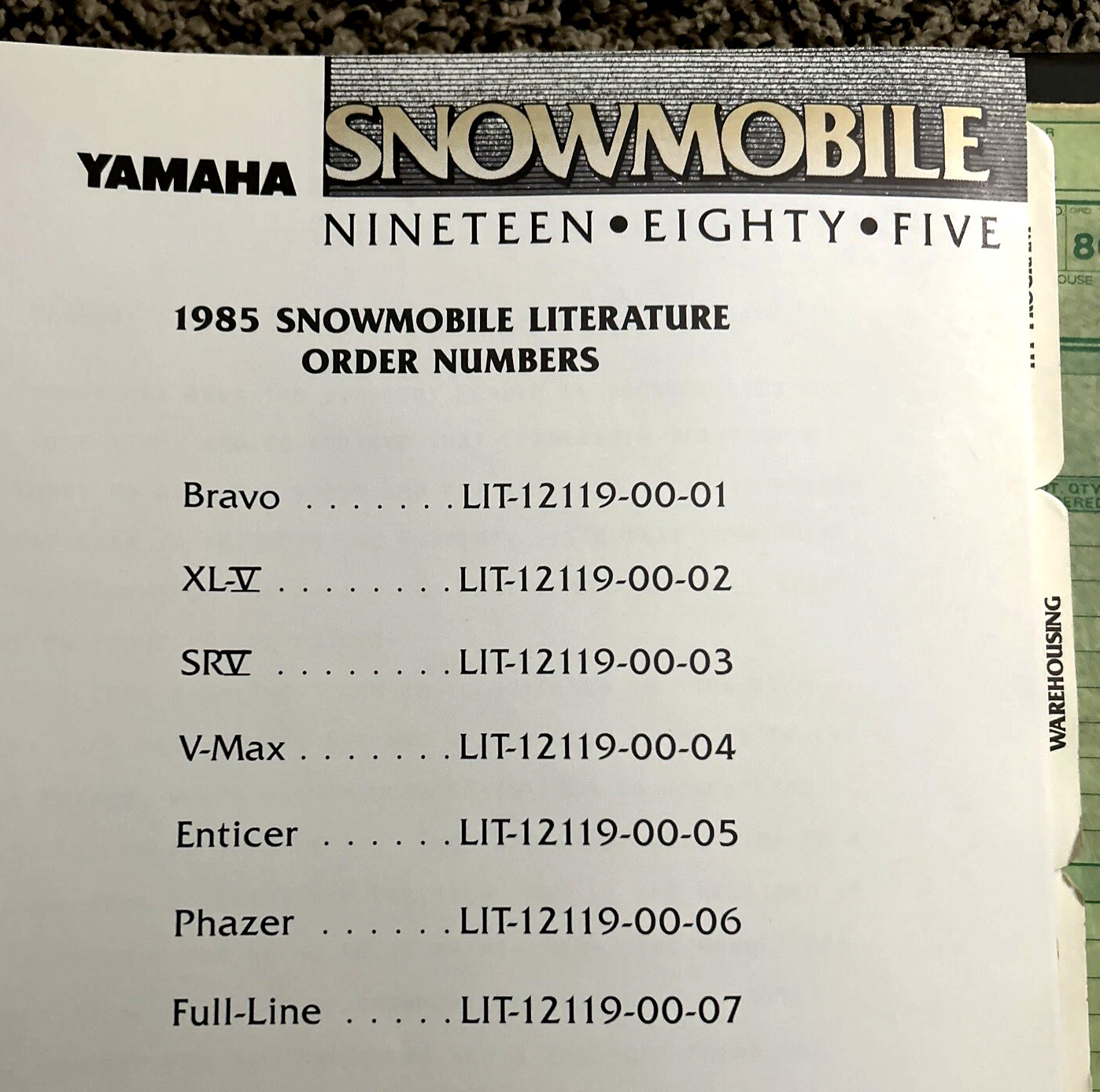 1985 YAMAHA SNOWMOBILE DEALER BINDER