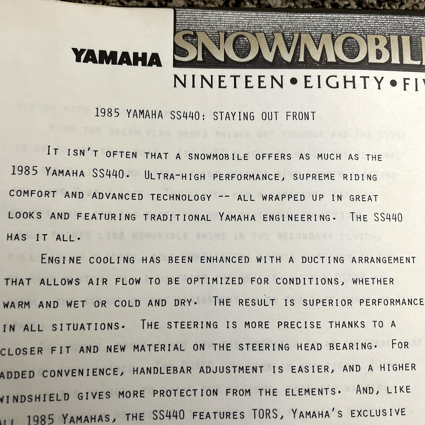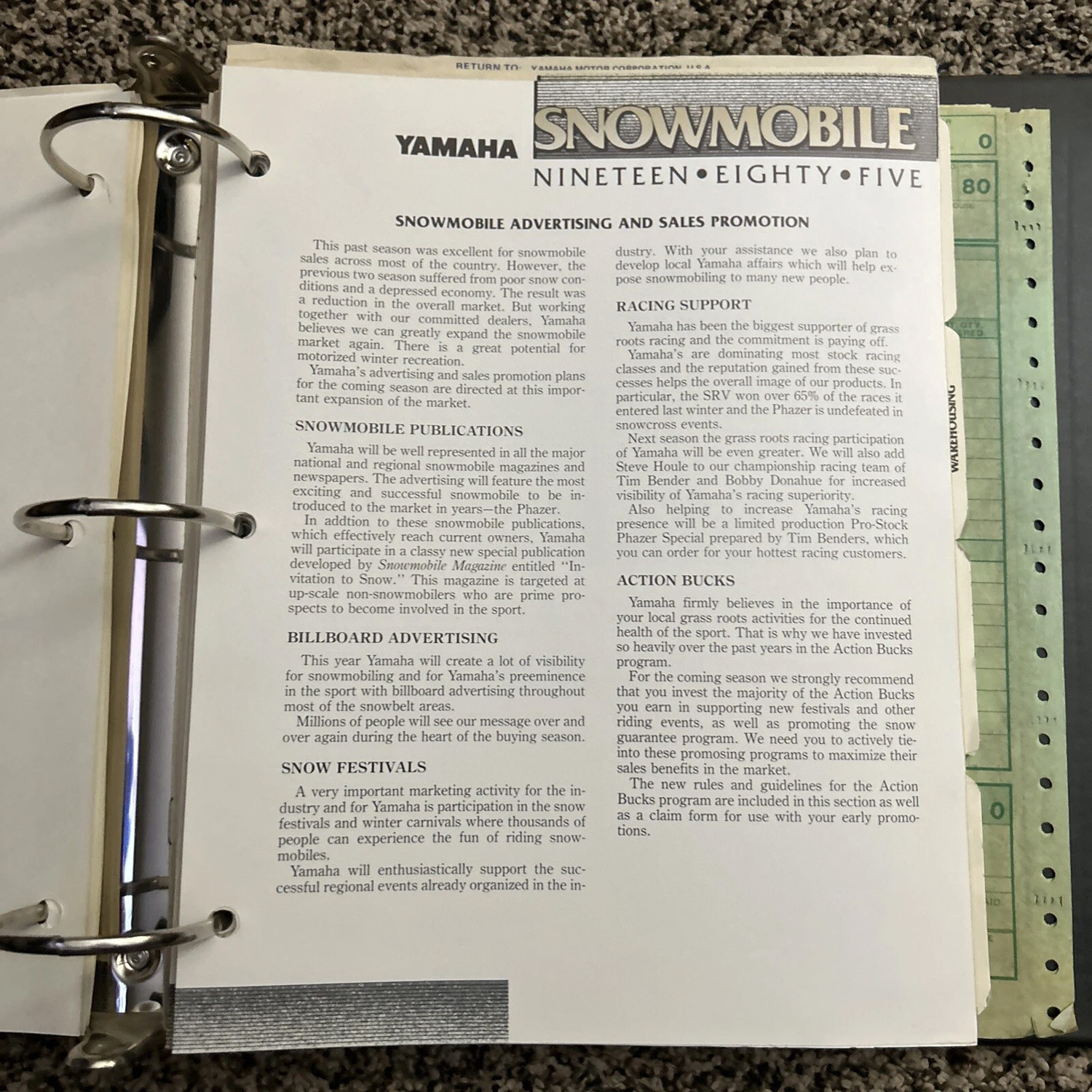 1985 YAMAHA SNOWMOBILE DEALER BINDER