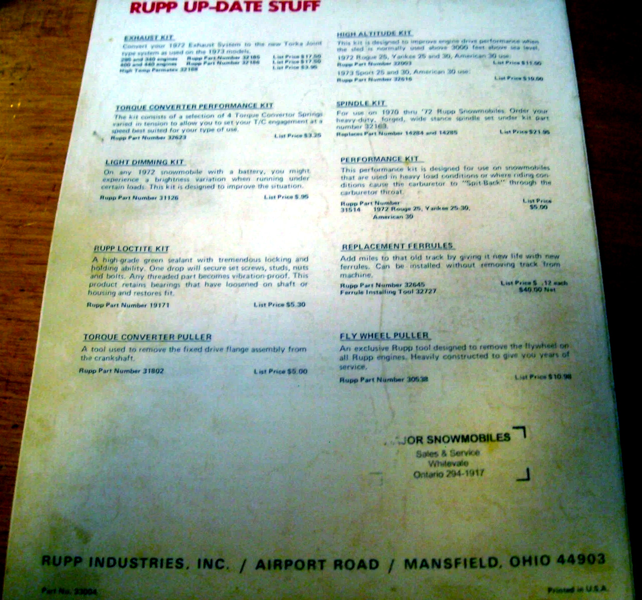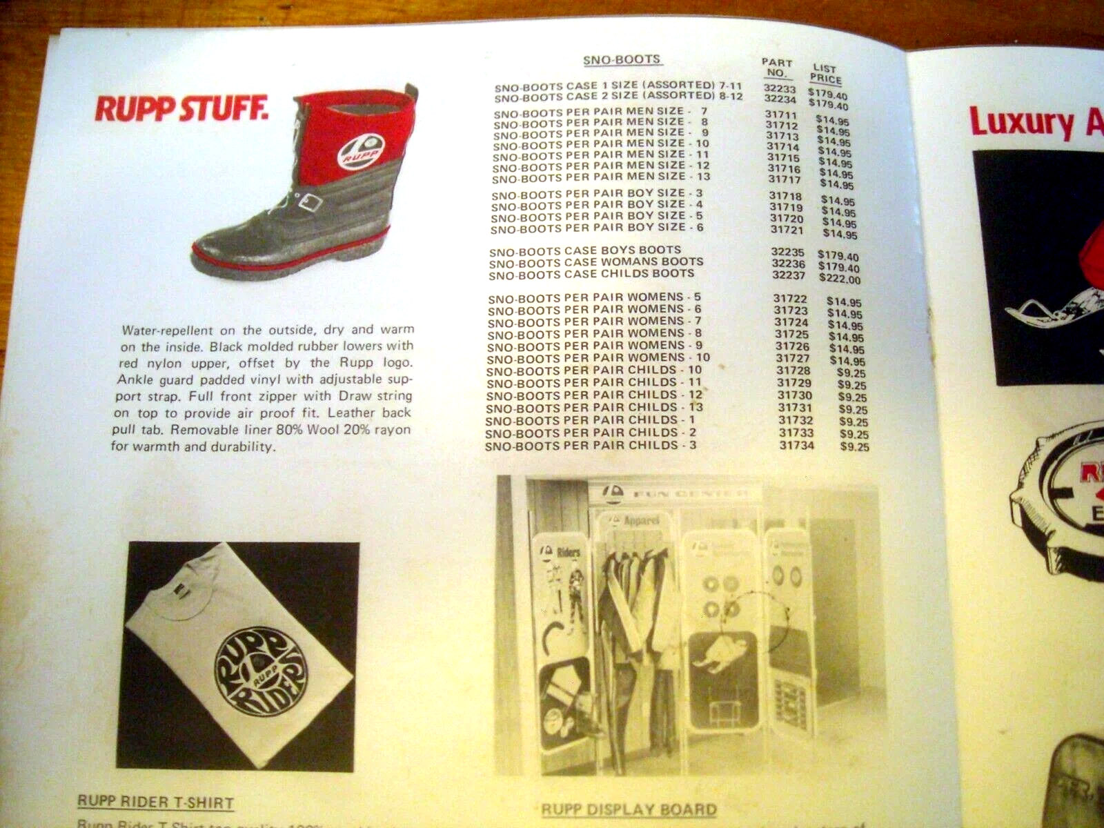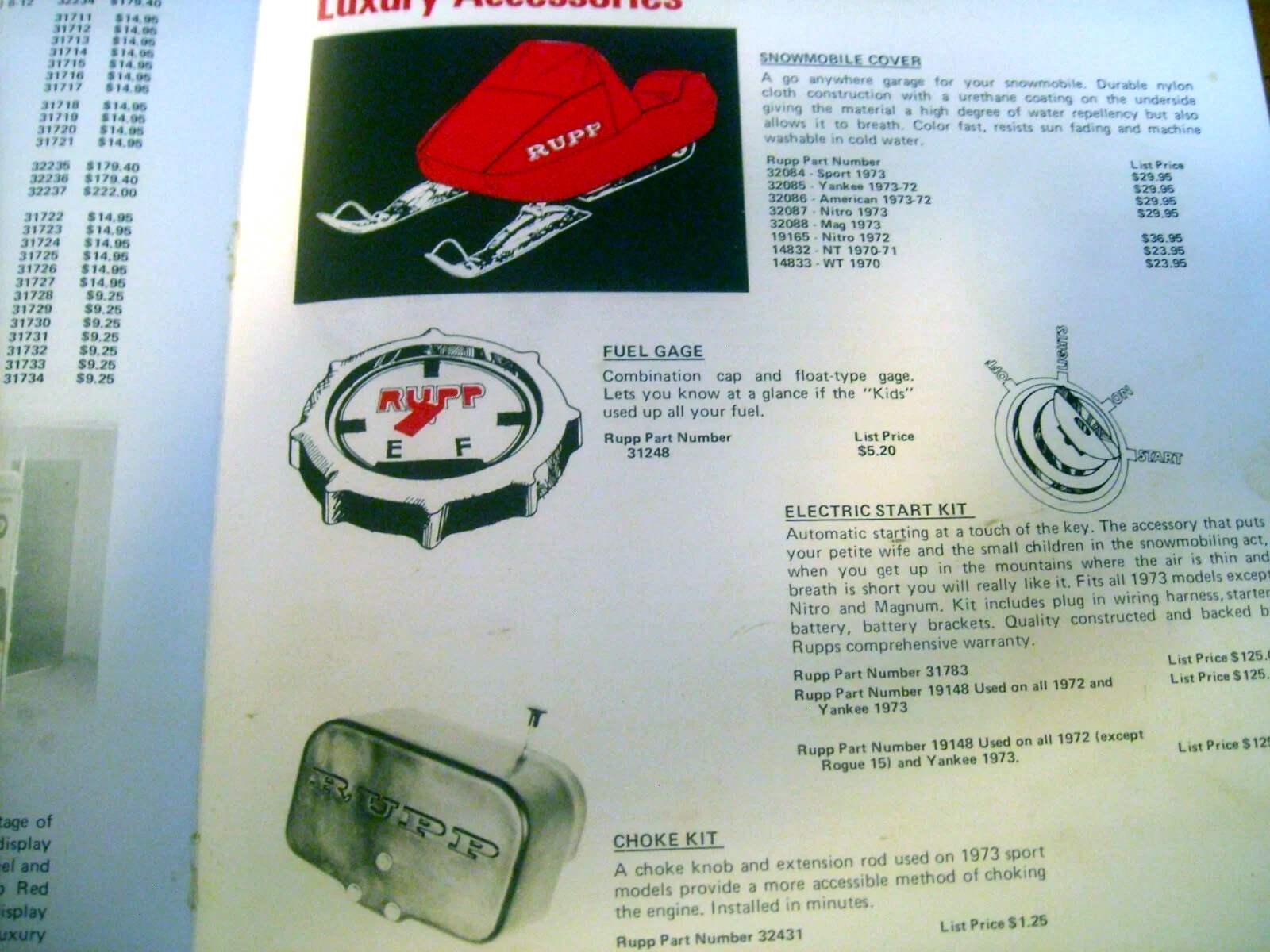 1973 RUPP SNOWMOBILE ACCESSORIES AND FASHION BROCHURE.