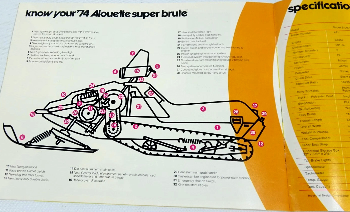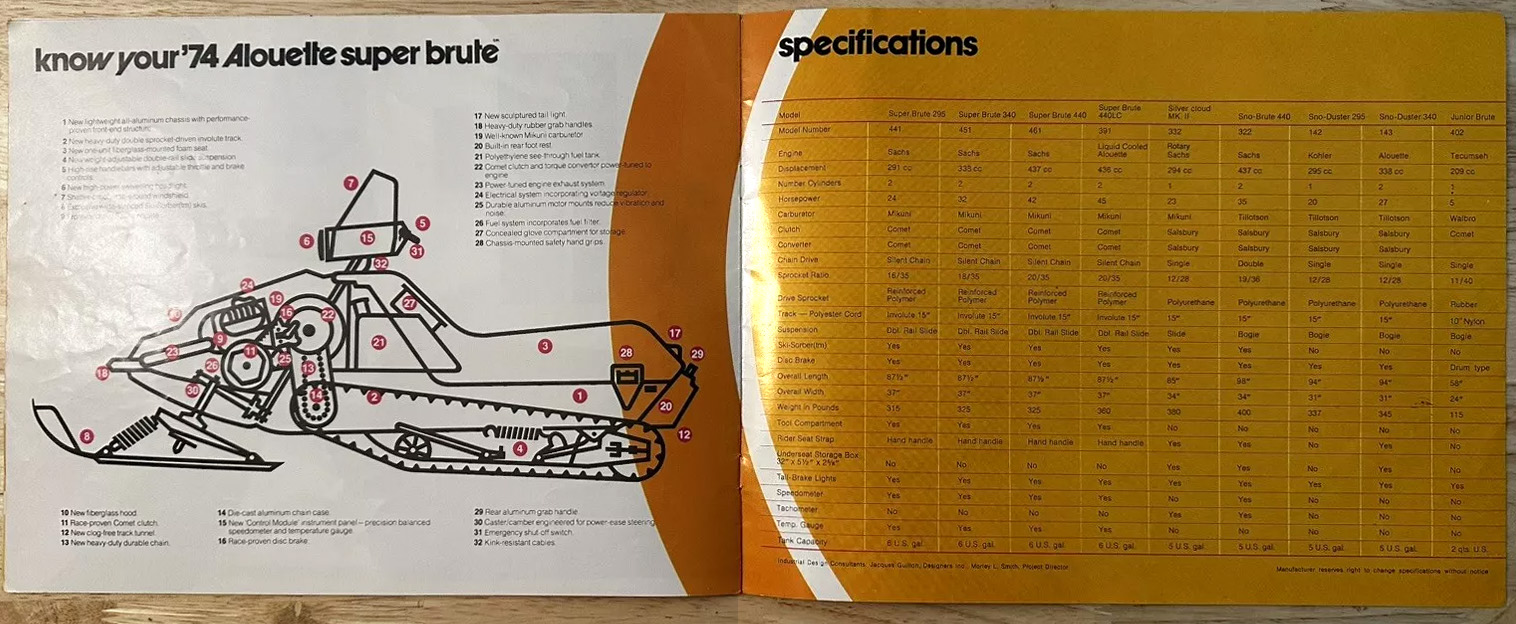 1974 ALOUETTE SNOWMOBILE BROCHURE