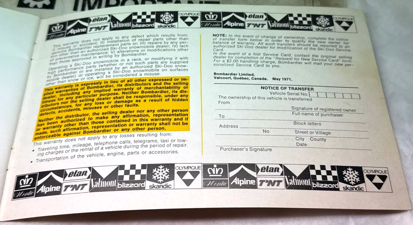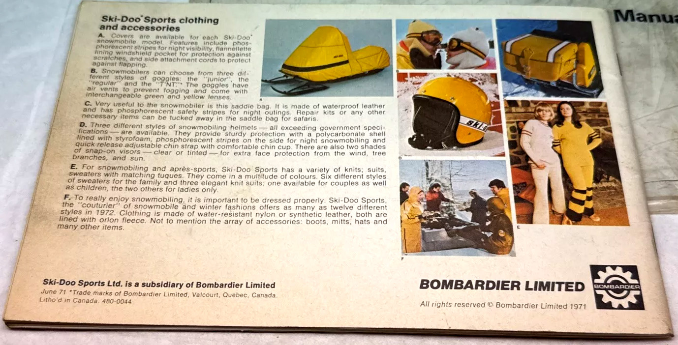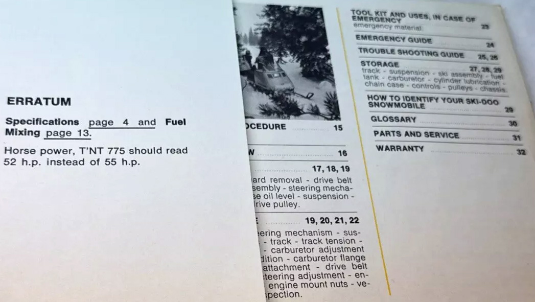 1972 SKI DOO T'NT SNOWMOBILE MANUAL