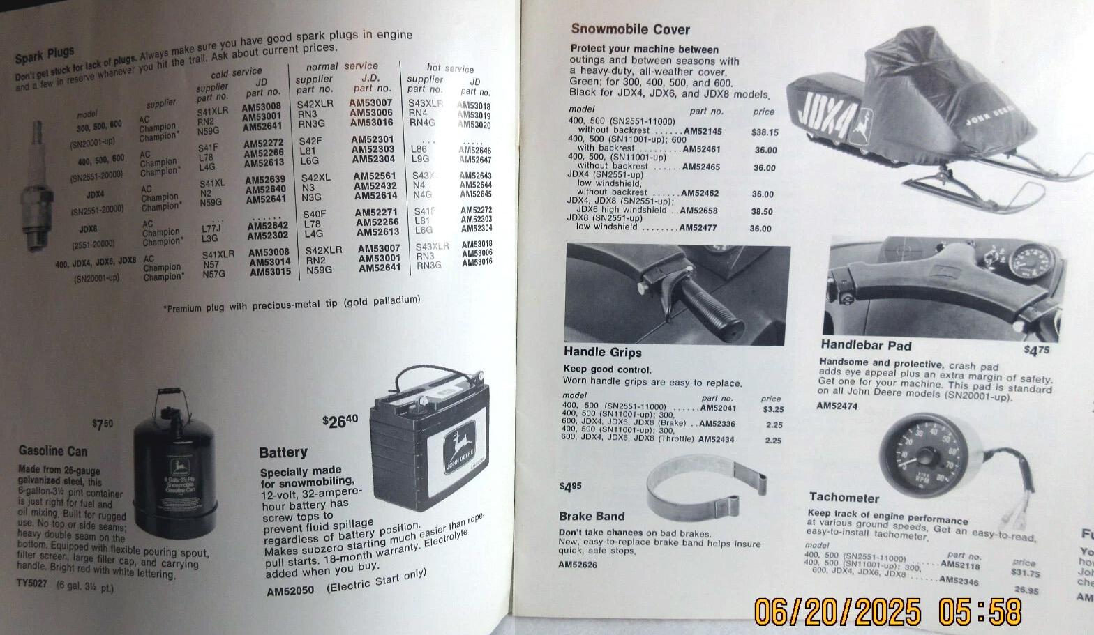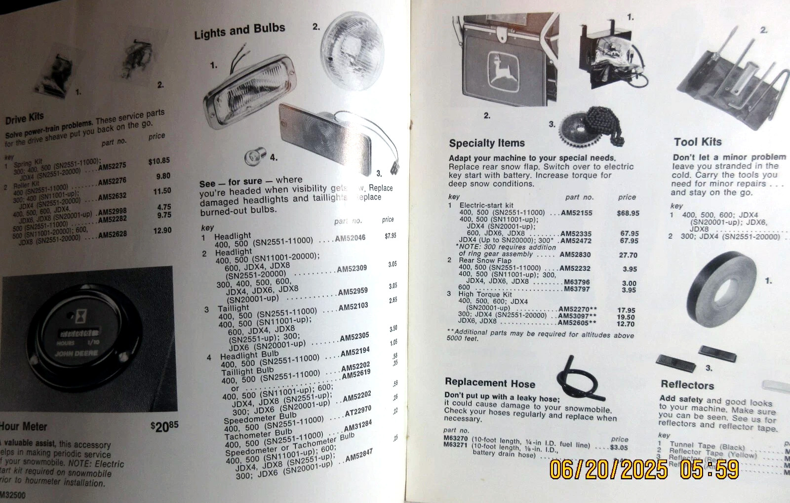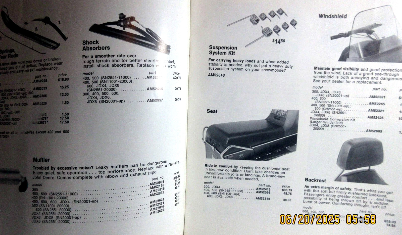 1973 - 1974 JOHN DEERE SNOWMOBILE ACCESSORIES BROCHURE