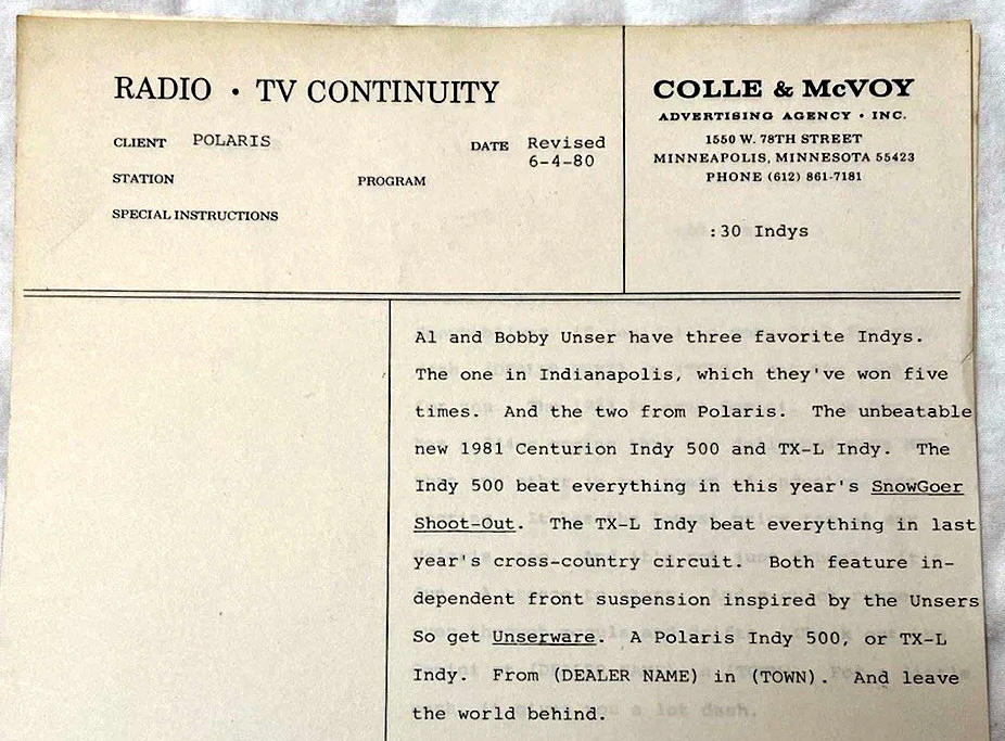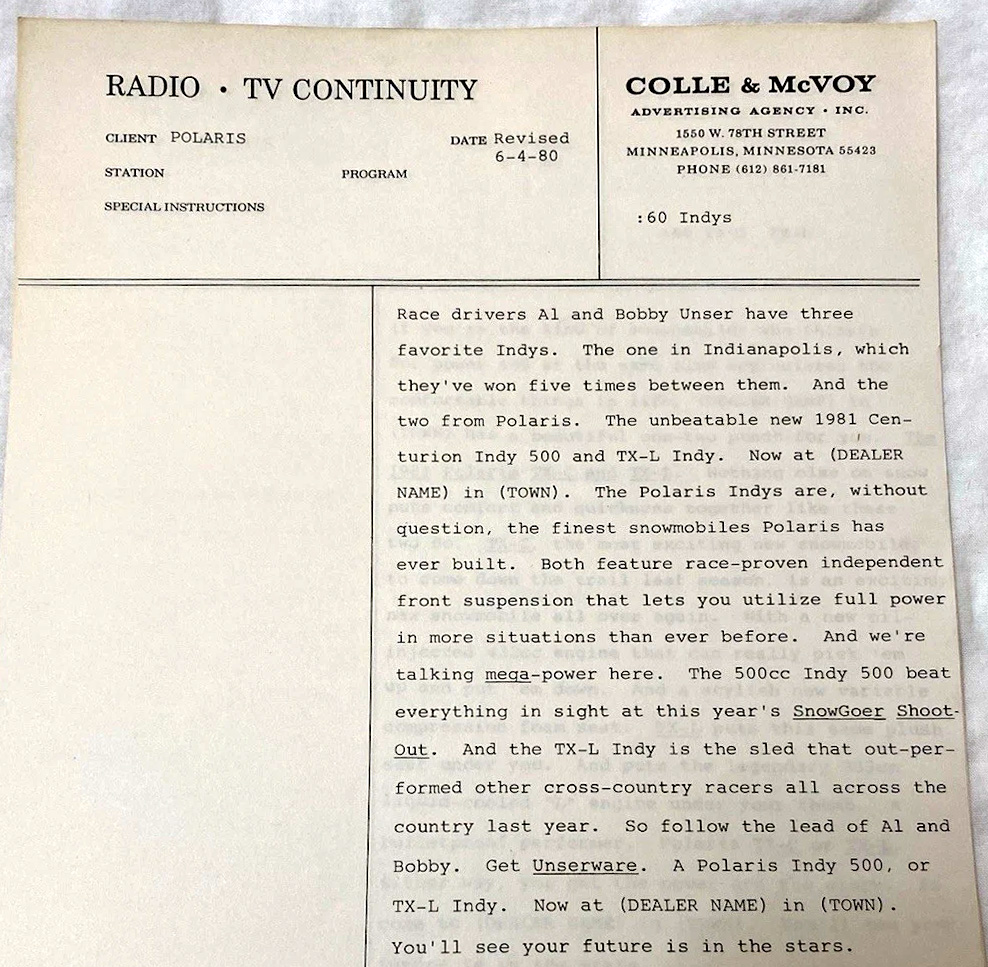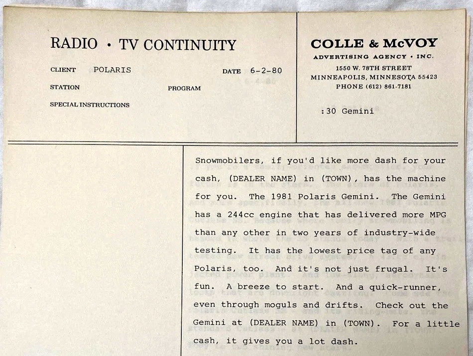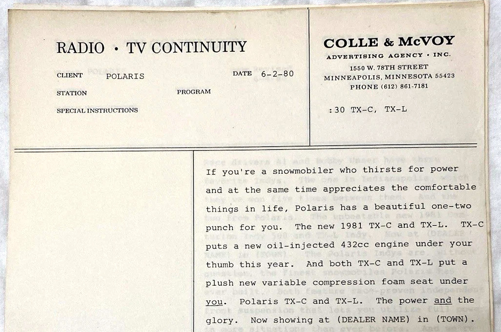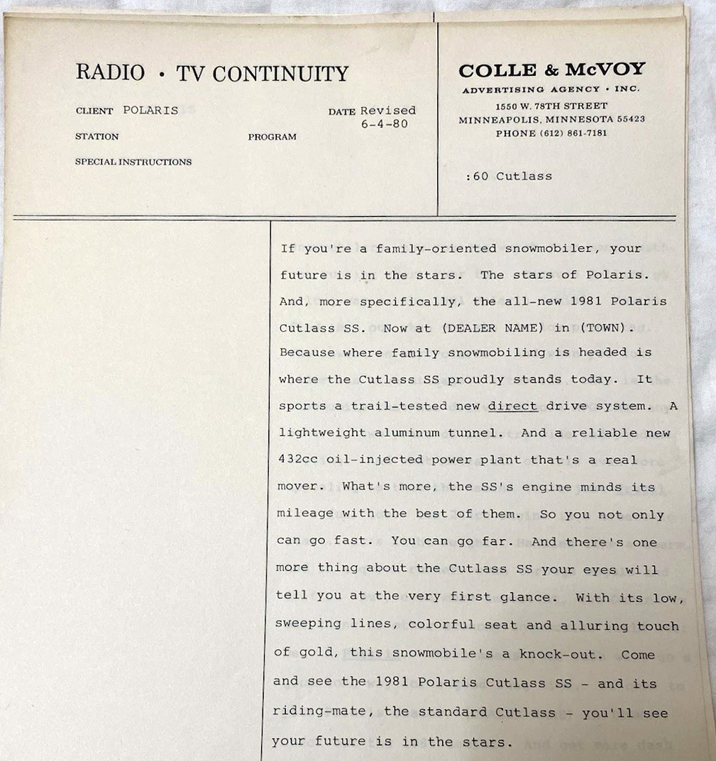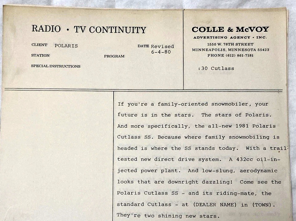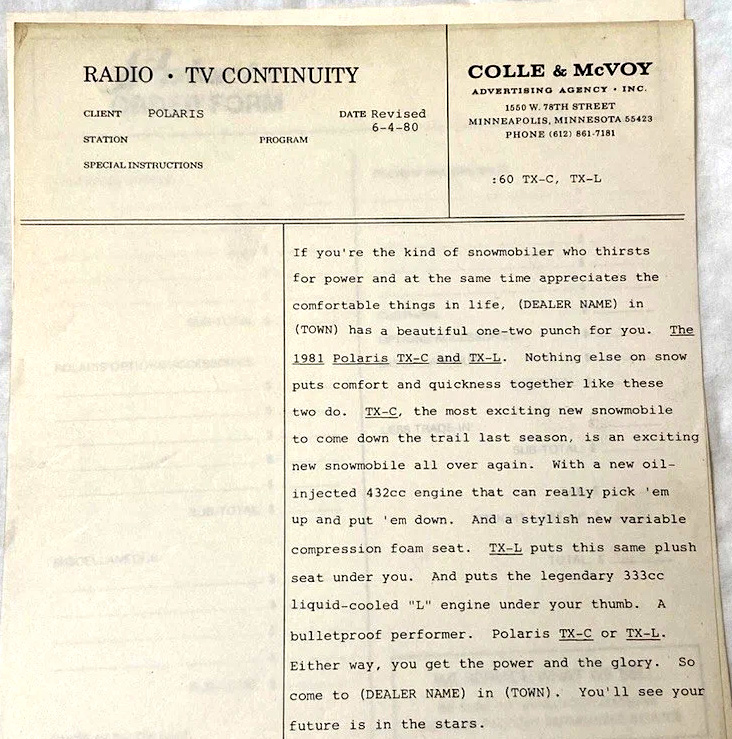 1981 POLARIS SNOWMOBILE DEALER ADS