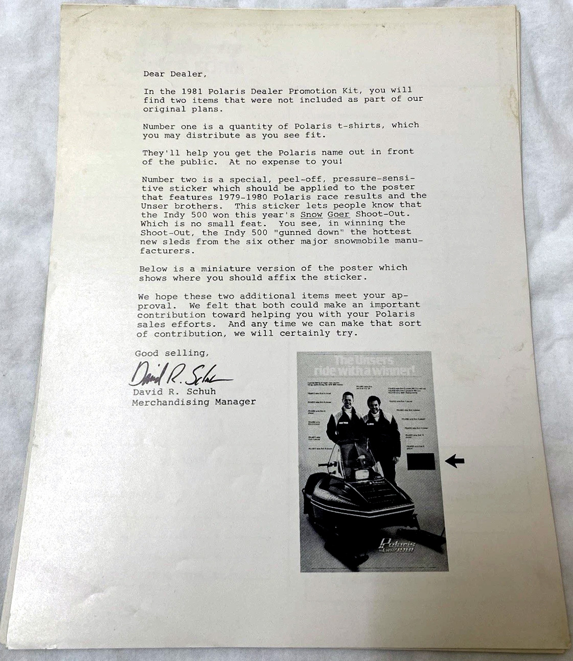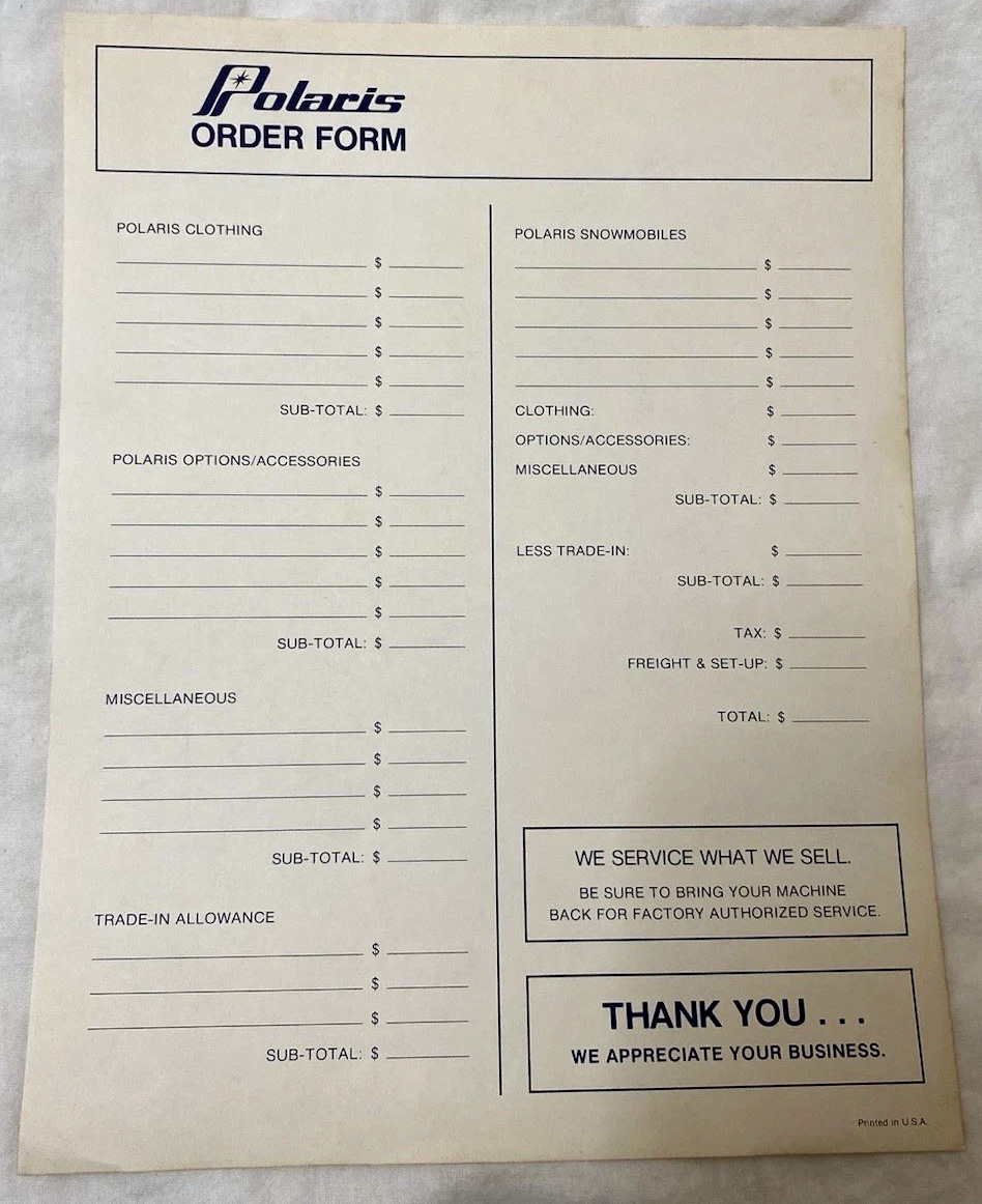 1981 POLARIS SNOWMOBILE DEALER PROMOTIONAL KIT AND ORDER FORM