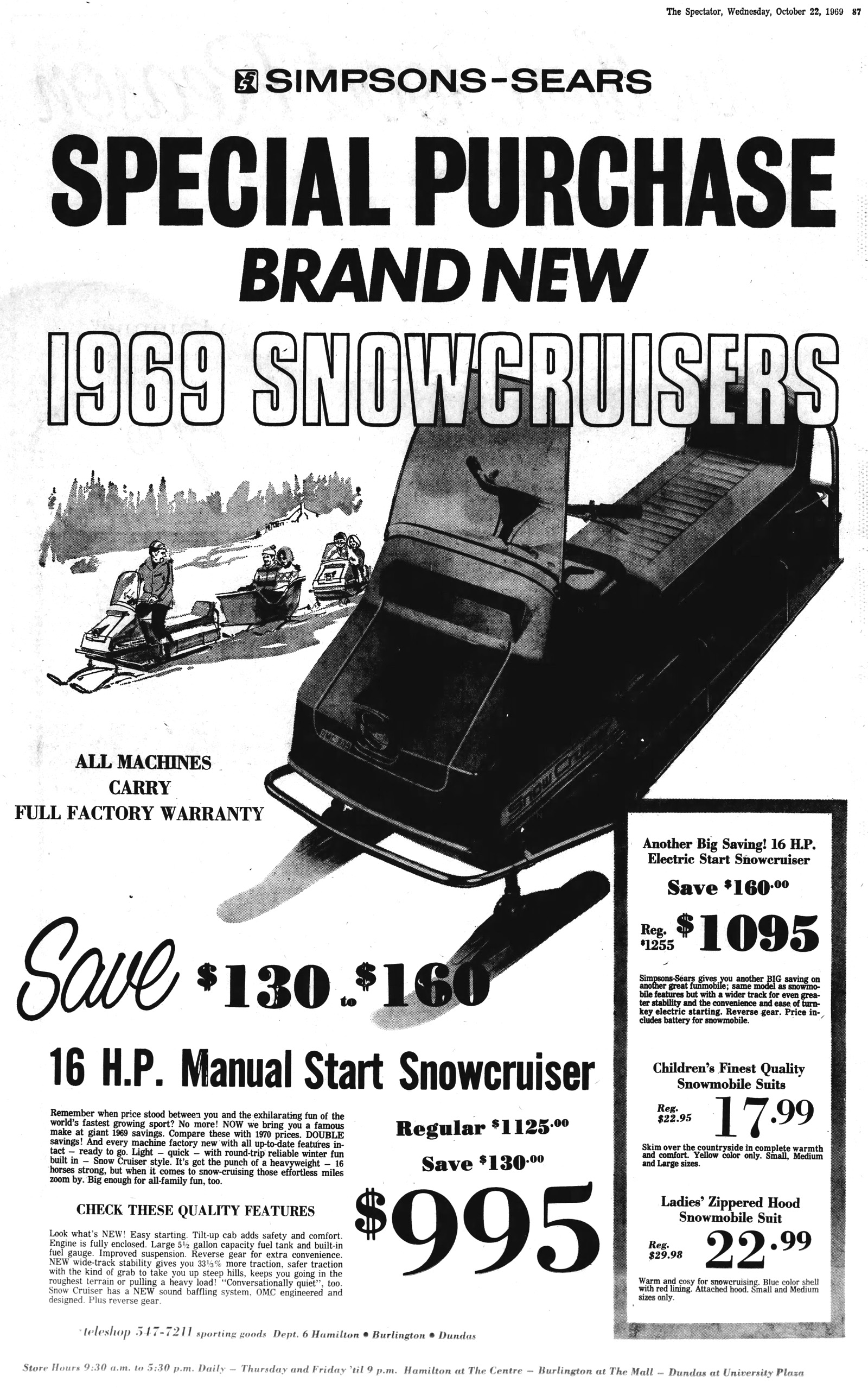 1969 OMC SNOW CRUISER SNOWMOBILE SALE AT SIMPSONS SEARS