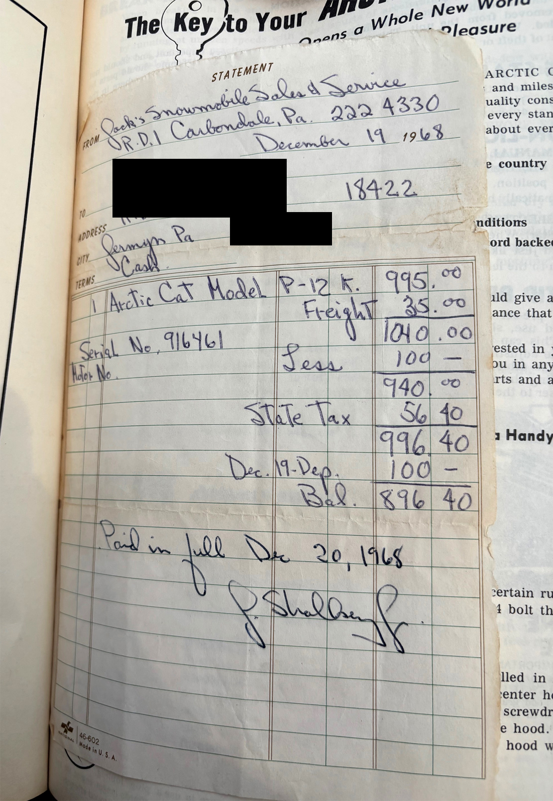 David. This 1969 Arctic Cat snowmobile sold at auction this year. Aaron Zeoli