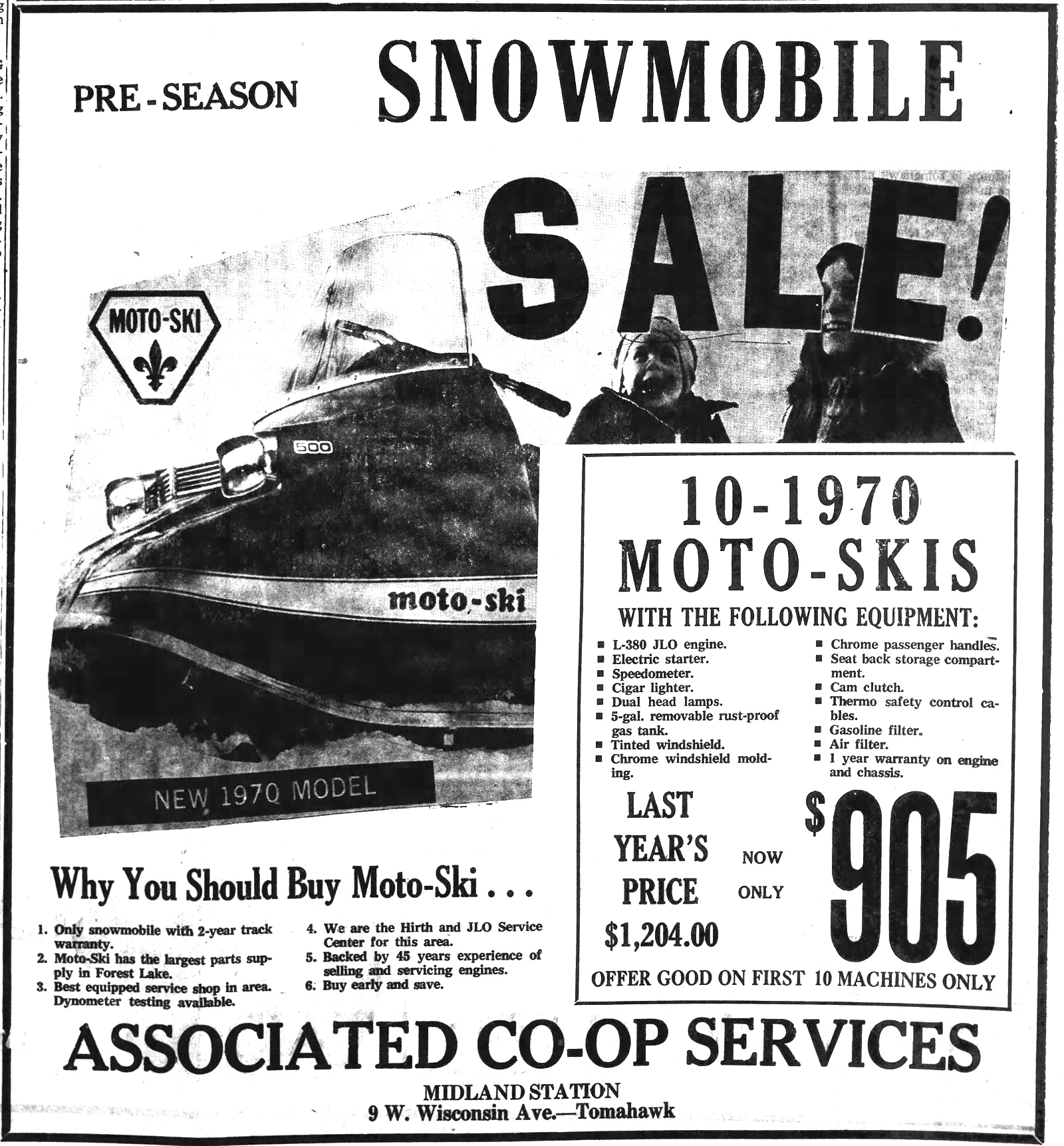 1970 MOTO SKI SNOWMOBILE AD |