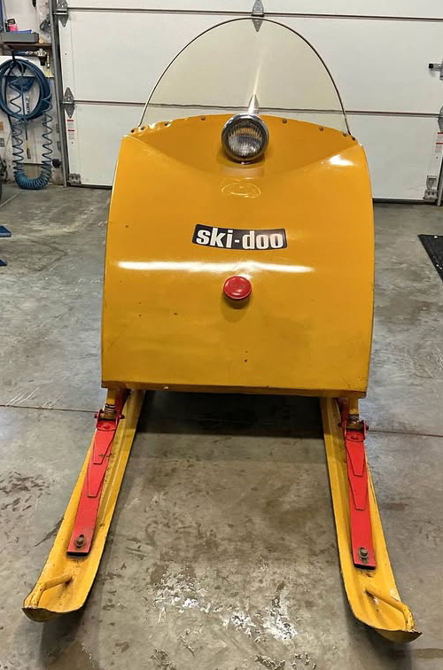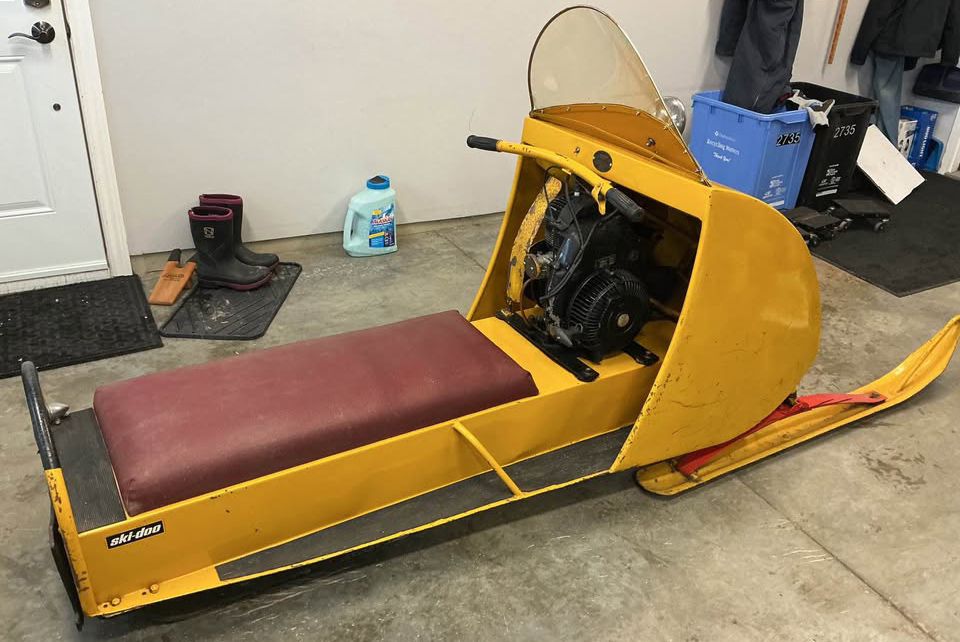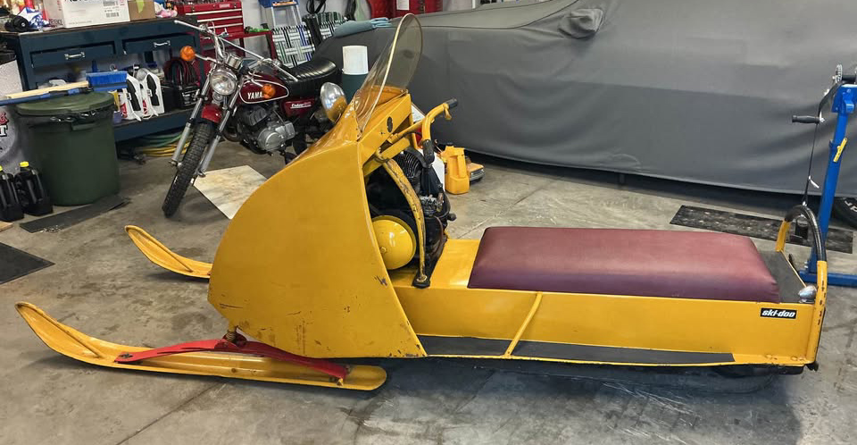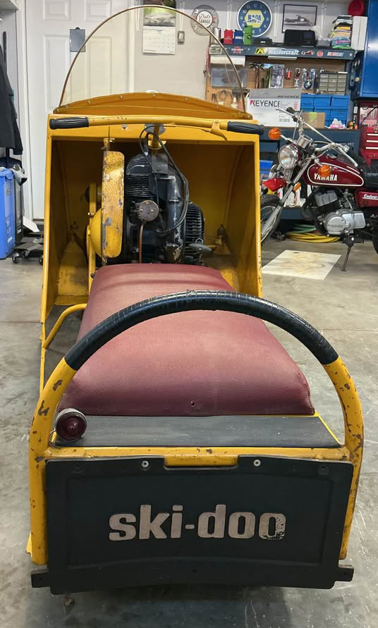 THIS VINTAGE SKI DOO SNOWMOBILE WAS RECENTLY FOR SALE. |