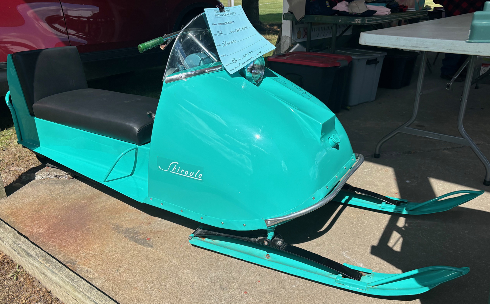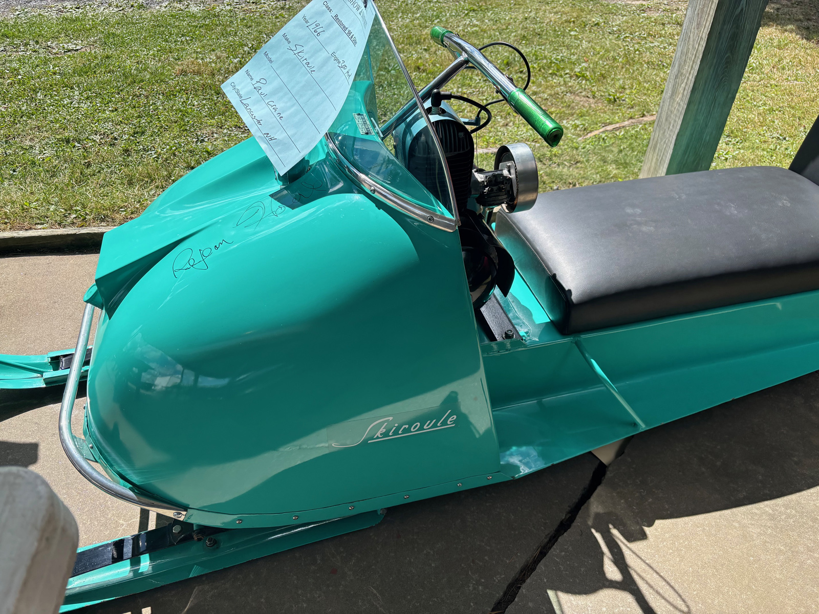 1966 SKIROULE SNOWMOBILE Hi David. Pictures are from the Turin NY show in Summer 2025. Aaron Zeoli THANKS AARON FOR THE GREAT PICTURES ! |