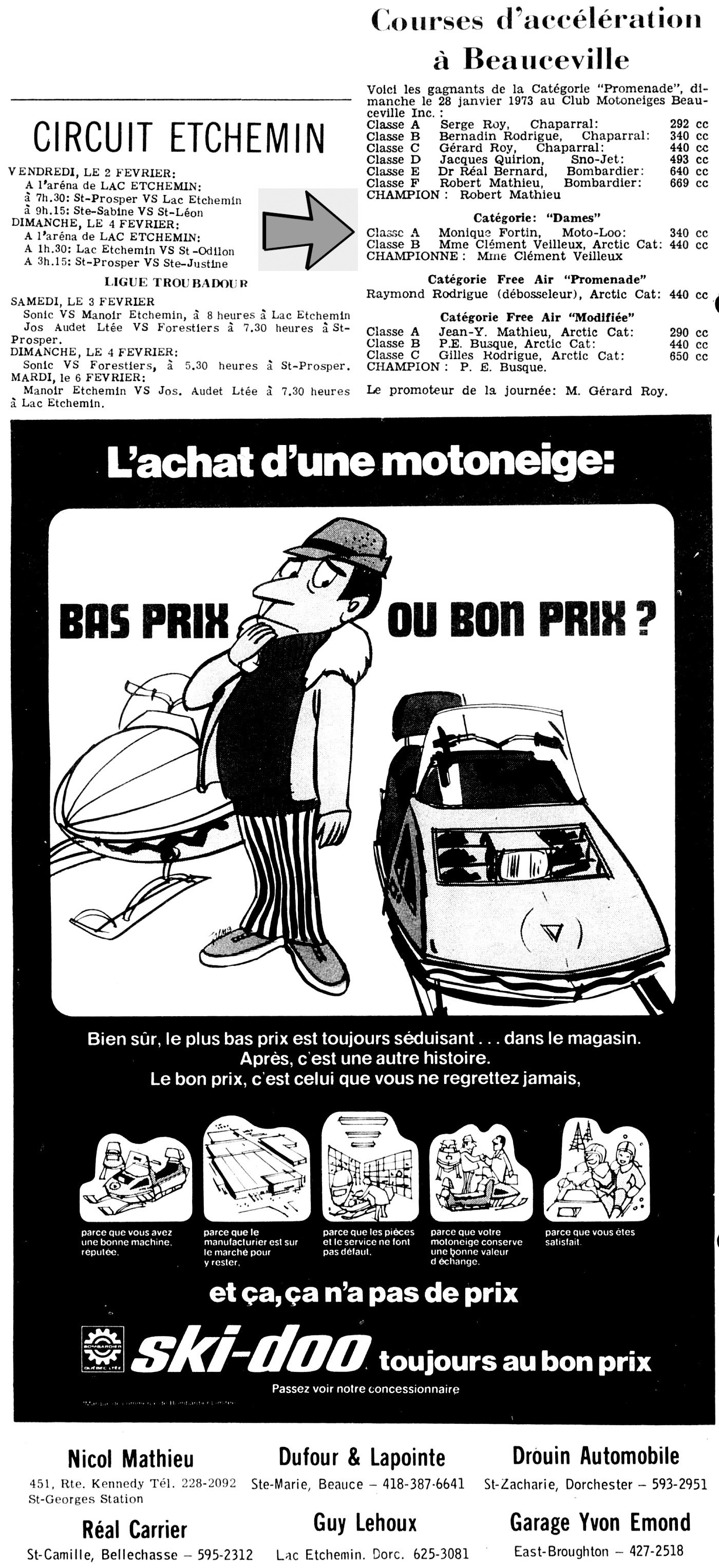 MONIQUE FORTIN WON WITH HER MOTO LOO SNOWMOBILE IN CLASS A WOMAN'S CATEGORY |