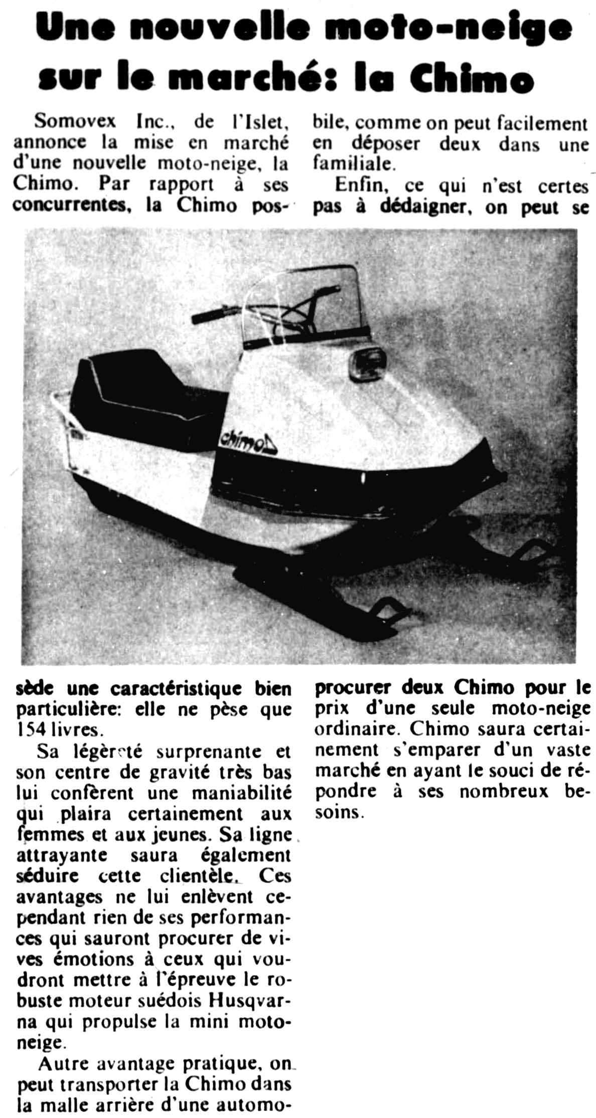 A BRAND NEW MARKET WITH THE CHIMO SNOWMOBILE.