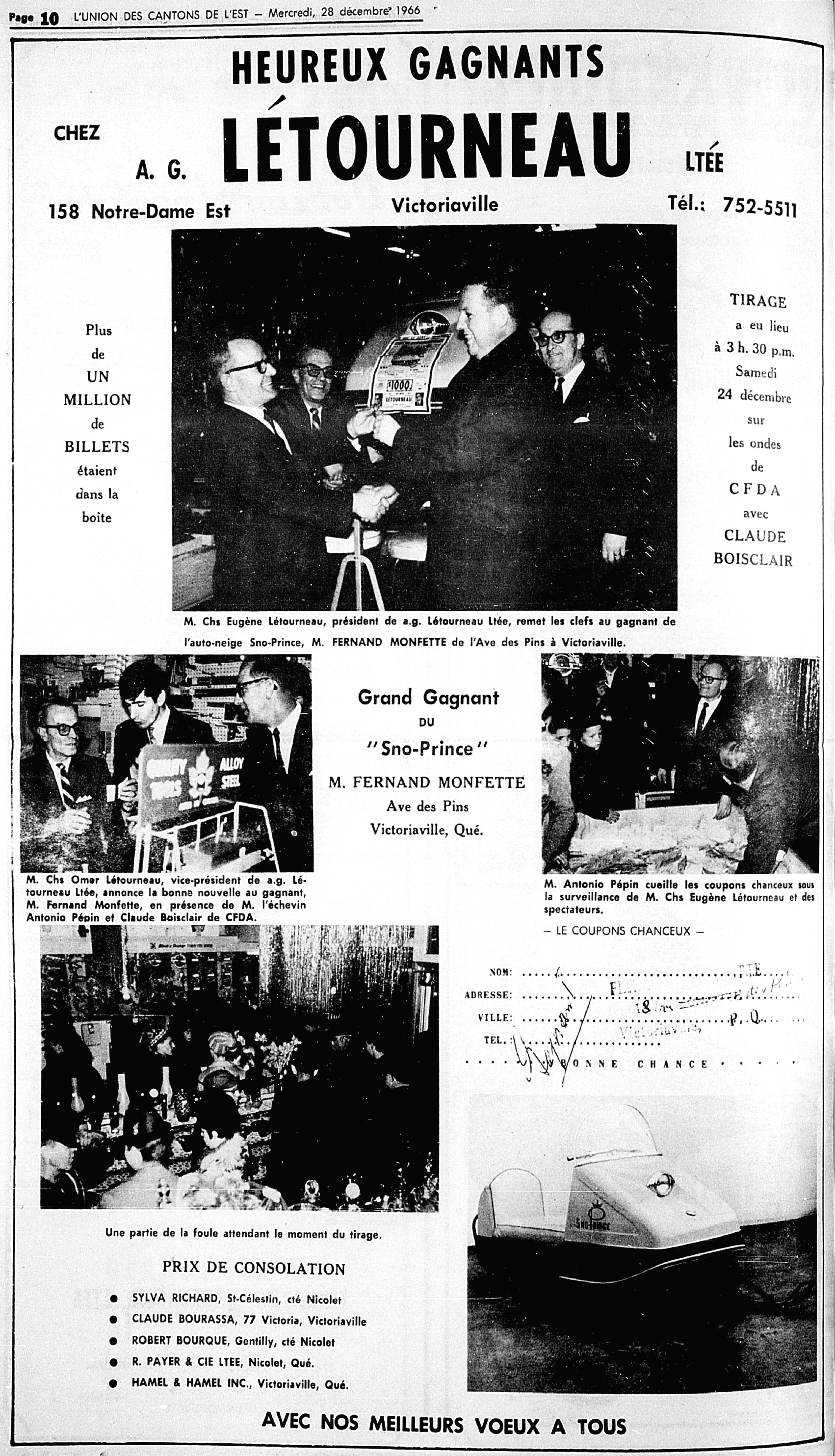 WINNER OF A 1967 SNO PRINCE SNOWMOBILE |